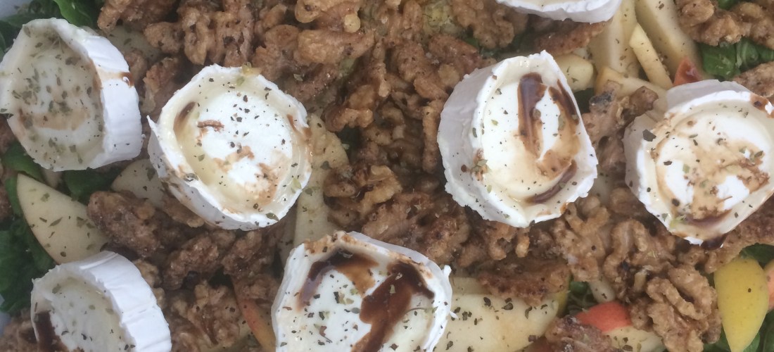 Simply irresistible. Salad night during yoga retreat is fast-becoming one of our favourite. Embracing the colours, flavours, smells and abundance of the local area. Here we’ve combined sticky, crispy, sweet walnuts, gooey, rich goats cheese, balsamic vinegar and fresh, crunchy apple. A few herbs and voila! A mouthwatering and nutritious, vegetarian, cow-dairy-free and refined-sugar-free win.