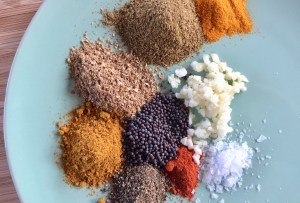 Tangy chickpeas, date and pistachio rice and mango salsa for dal