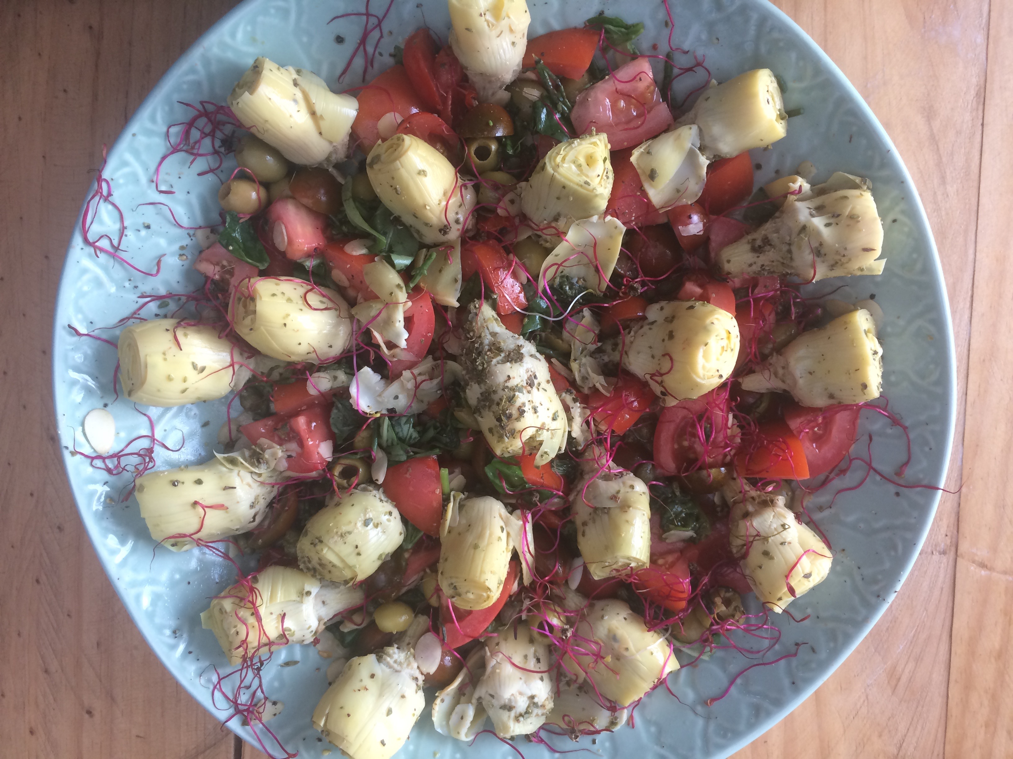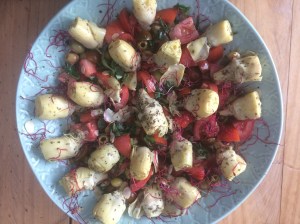 Artichoke, olive, caper, almond and tomato salad